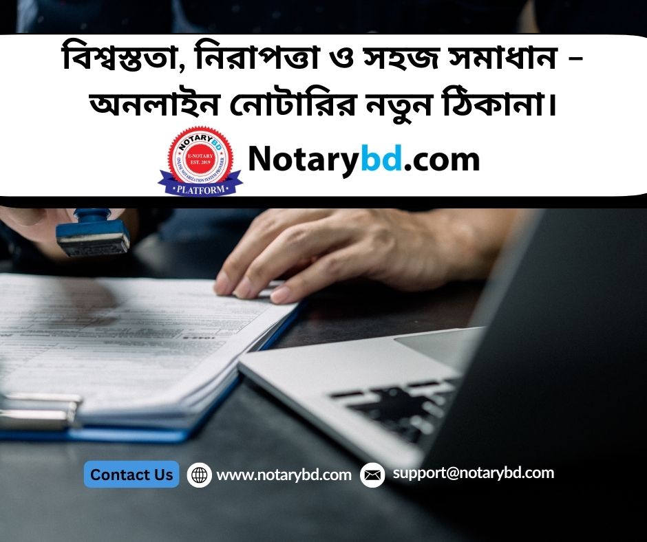 Notarybd.com জাতীয় পুরস্কারপ্রাপ্ত ও সরকারী স্বীকৃত দ্রুত, সহজ, নিরাপদ, বিশ্বস্ত ও যাচাইযোগ্য অনলাইন নোটারী সার্ভিস প্ল্যাটফর্ম। বিভিন্ন...