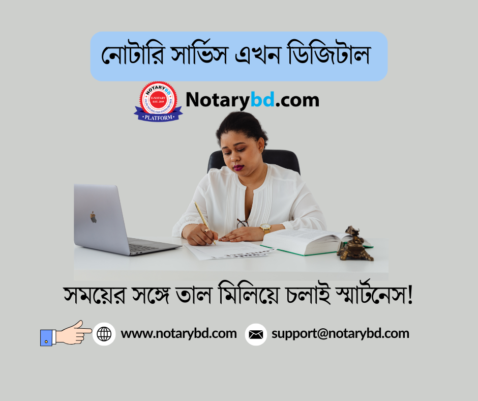 আজকের ডিজিটাল যুগে সময় বাঁচানো এবং নিরাপদে কাজ সম্পন্ন করাই সবচেয়ে বড় প্রয়োজন। আর তাই Notary BD এনেছে অনলাইন নোটারি সেবা – যেখানে পাবেন বিশ্বস্ত...