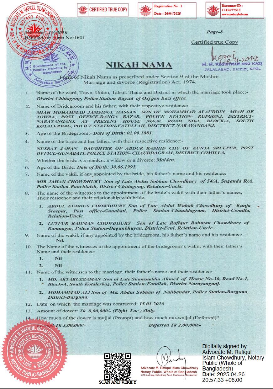 NIKAHNAMA NOTARIZED COPY SAMPLE