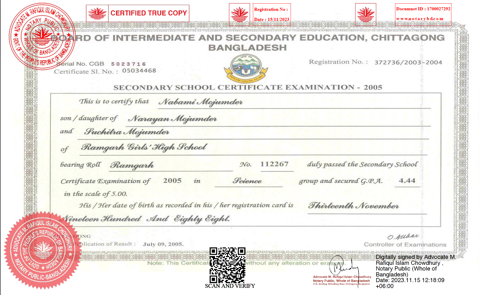 ACADEMIC CERTIFICATE NOTARIZED COPY SAMPLE