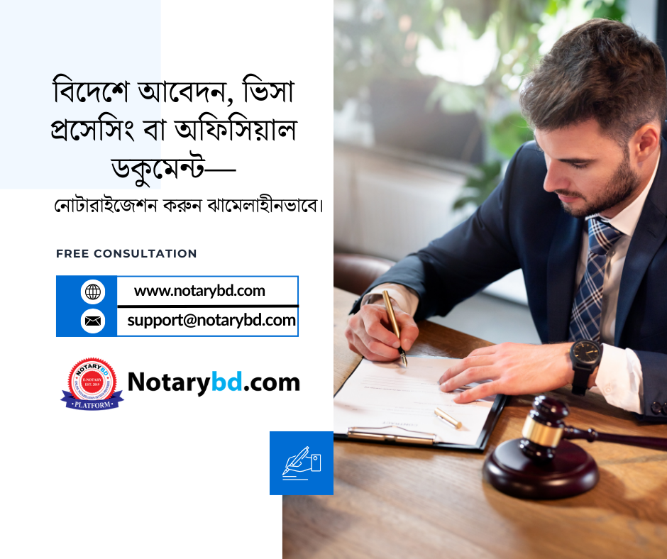 বিদেশে পড়াশোনা, চাকরি, ইমিগ্রেশন, ভিসা প্রসেসিং বা যেকোনো অফিসিয়াল কাজের জন্য নোটারাইজড ডকুমেন্ট অত্যন্ত গুরুত্বপূর্ণ।